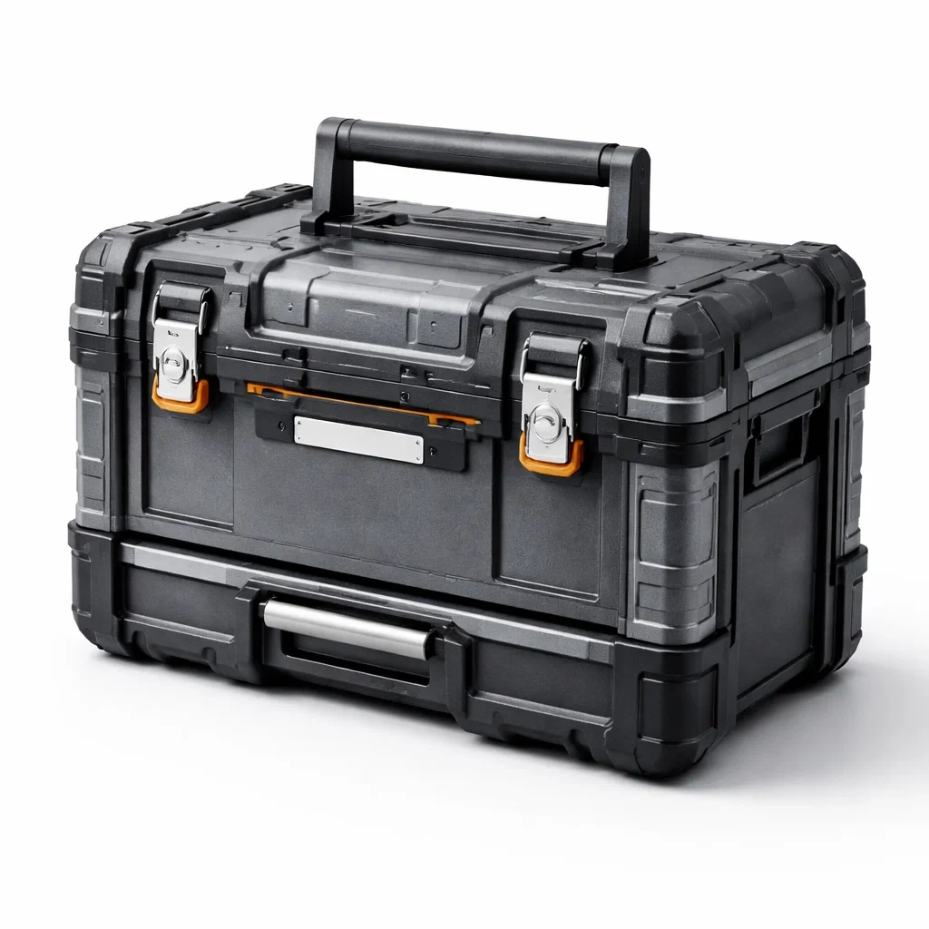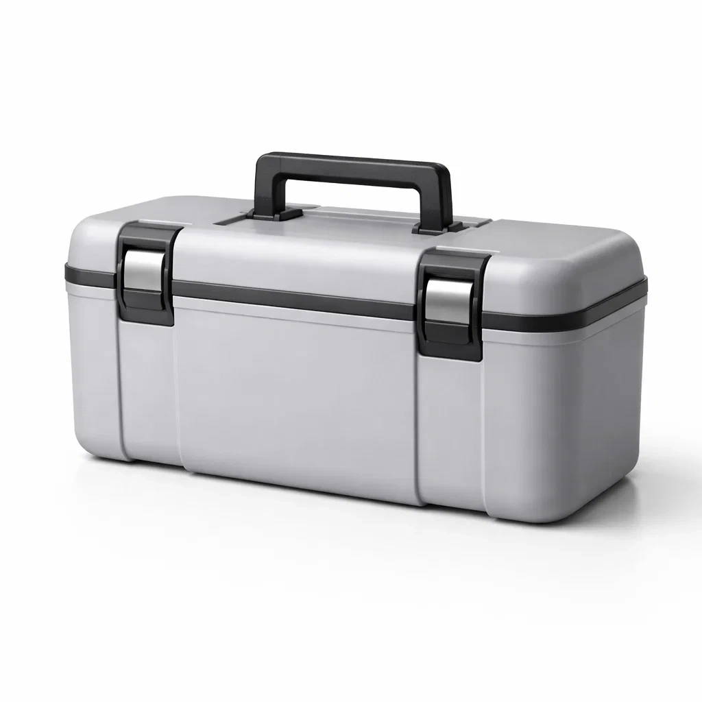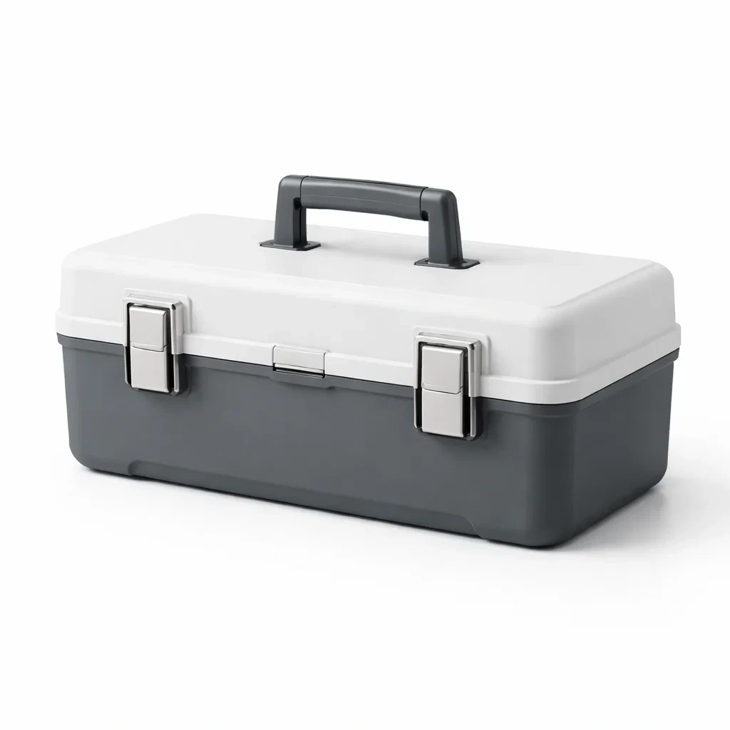 Boîte à outils en plastique abs gris foncé et blanc